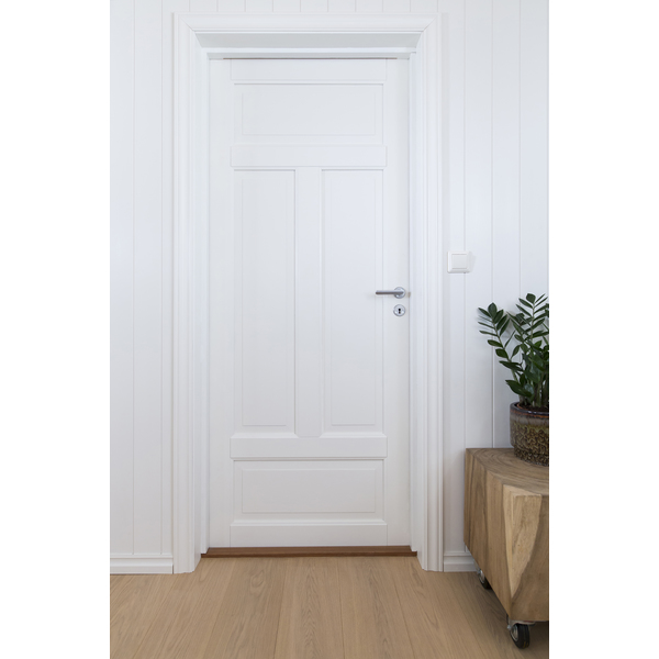 Sprekkpanel har en slett utførelse og en rett kant med spalte/sprekk på 3 mm etter montering. Heltrepanelen er i dimensjon 13x145mm og er ferdig malt i fargekoden NCS S0500N (Klassisk hvit). Produsert av førsteklasses fingerskjøtt kvistfri furu. Garanti mot gulning og gjennomslag av kvist. Nedtørket til 10 % fuktighet gjør den stabil og godt egnet for nordisk klima. Lang fjær for skjult innfesting. Panelprofilen egner seg både som stående og liggende veggkledning innendørs og også som takpanel.